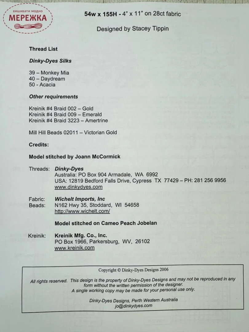 Ретельно продумана схема зробить вишивання швидким та приємним. Надзвичайні кольори притягують погляди, адже дизайнери використовують цікаві кольорові поєднання та нитки ручного фарбування власного виробництва. Приємним бонусом стануть дрібні цікаві деталі, що урізноманітнять процес і зроблять його захопливим!