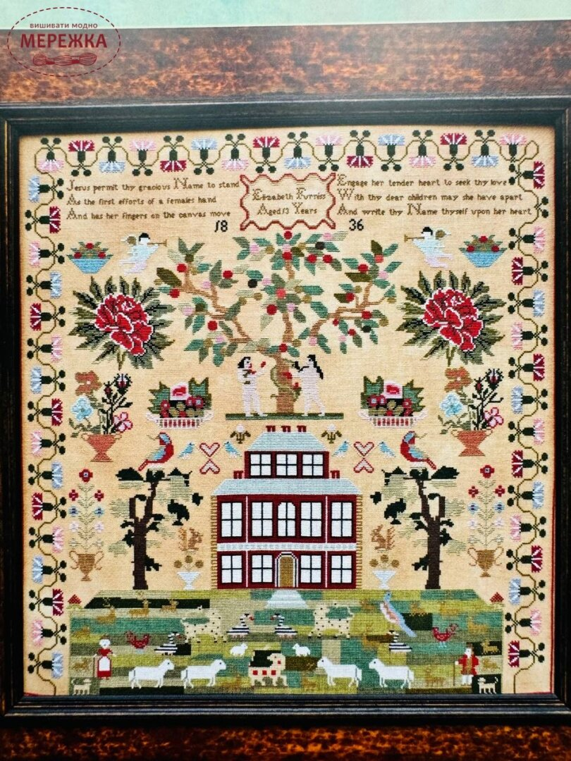 Схема для вишивання хрестиком Elizabeth Furniss 1836 від Hands Across the Sea Samplers.