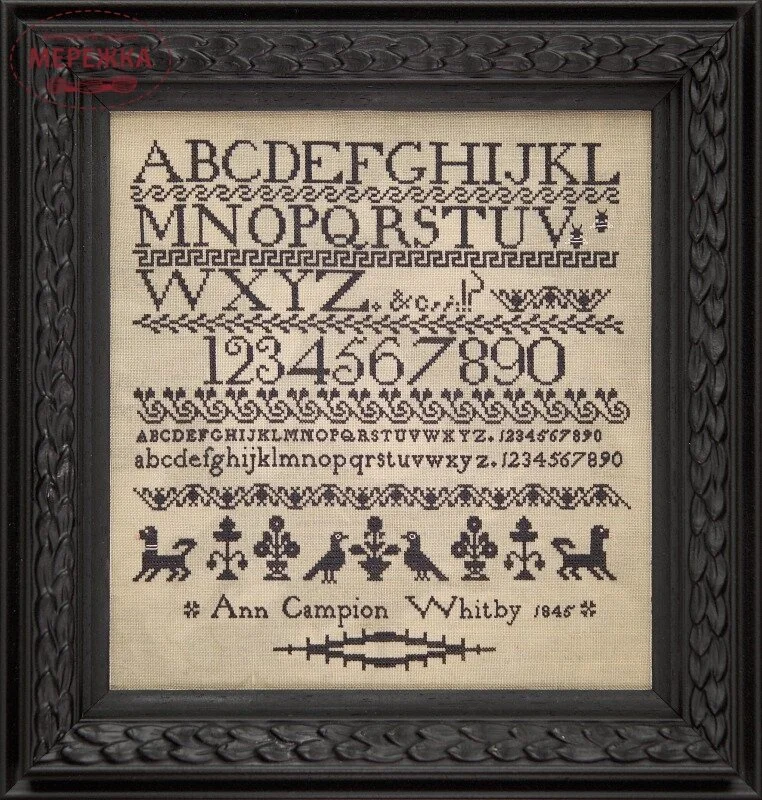 Схема для вишивання хрестиком Ann Campion 1845 від Hands Across the Sea Samplers.