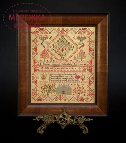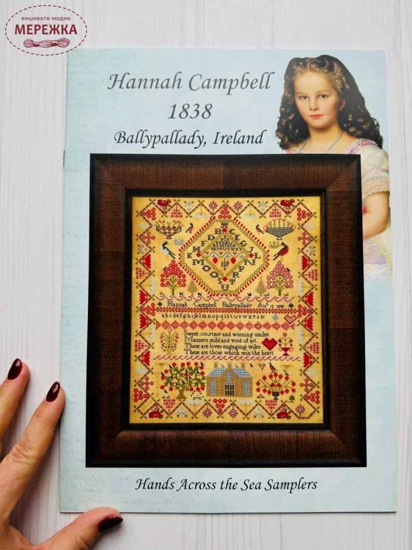 Схема для вишивання хрестиком Hannah Campbell 1838 від Hands Across the Sea Samplers.