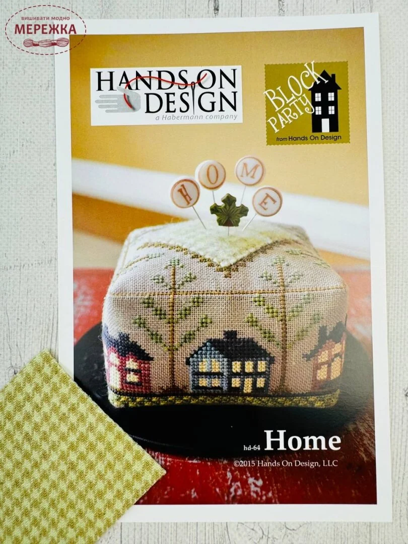 Деякі схеми Hands On Design укомплектовані декоративними елементами від автора - стрічками, відрізами тканин, підвісками тощо. На фото показано потрібні матеріали для вишивання цієї схеми (муліне, тканина, бісер, декоративні елементи).