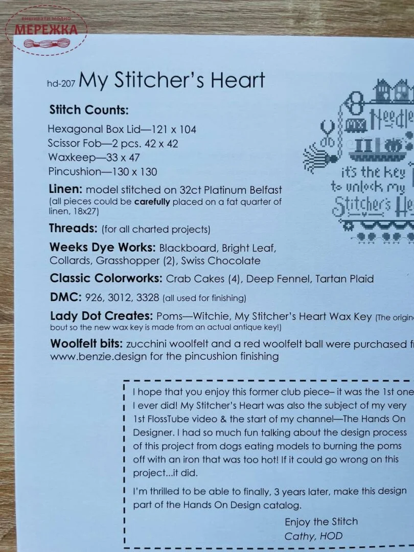 Схема для вишивання від Hands On Design "My Stitcher's Heart".