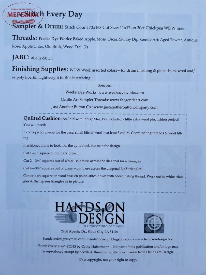 Схема для вишивання від Hands On Design "Stitch Every Day".
