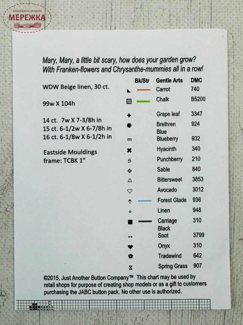Схема для вишивання хрестиком від Just Another Button "Mary, Mary, a Little Bit Scary".