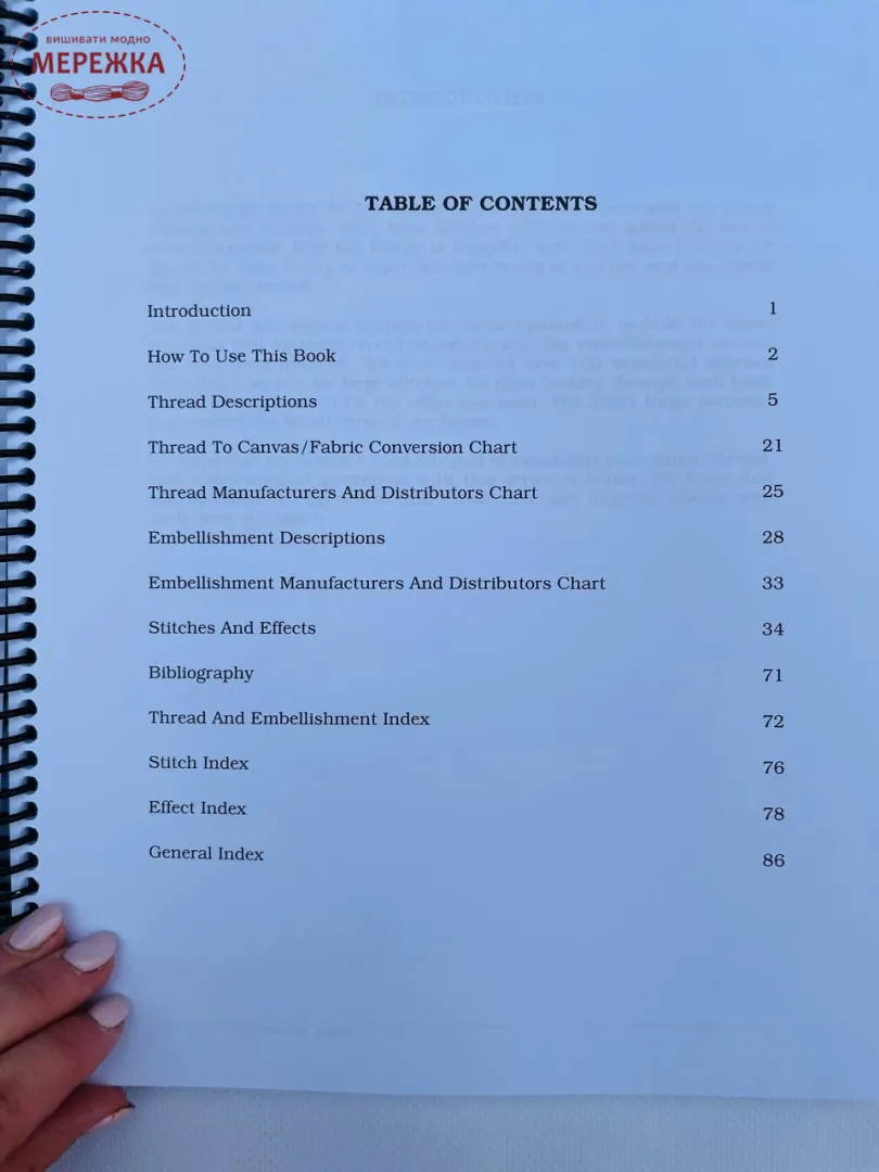 Для кожного стібка в книзі дається детальна інформація з описом ефектів, що він може створити. А також дані його варіації.