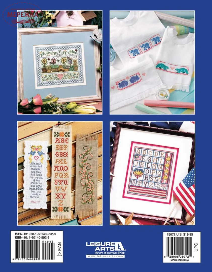 108 класичних дизайнів для оновлення вашого дому. Ви можете прикрасити найчарівніші слюнявчики для свята дитини або подарувати своїй улюбленій читачці ідеальну закладку. Містить багато веселих сюрпризів для друзів, зокрема міні-пробники, футляри для голок і ароматизовані пакетики. Крім того, величезна різноманітність алфавітів для персоналізації вашої роботи або створення власних оригінальних висловів. Фотографії, таблиці кольорів і прості інструкції забезпечать нескінченні години творчості. Серед дизайнів: тварини, надихаючі підписи, квіти, цукерки, іграшки, риби, сади, мотиви будинків, американські прапори та багато іншого.