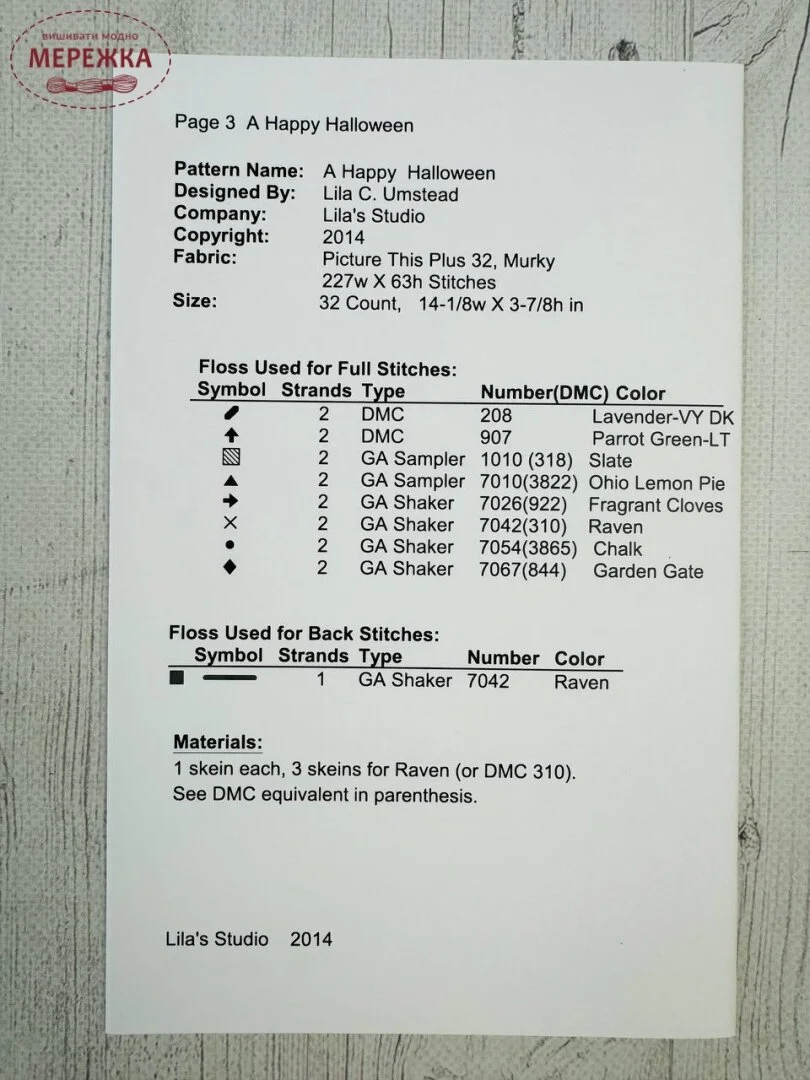 Всі необхідні матеріали (тканину та муліне) ви знайдете у нашому магазині. Якщо нитки від Weeks Dye Works, Classic Colorworks, The Thread Gatherer та The Gentle Art відсутні в нашому магазині, ми разом зможемо підібрати коректну заміну на муліне DMC.