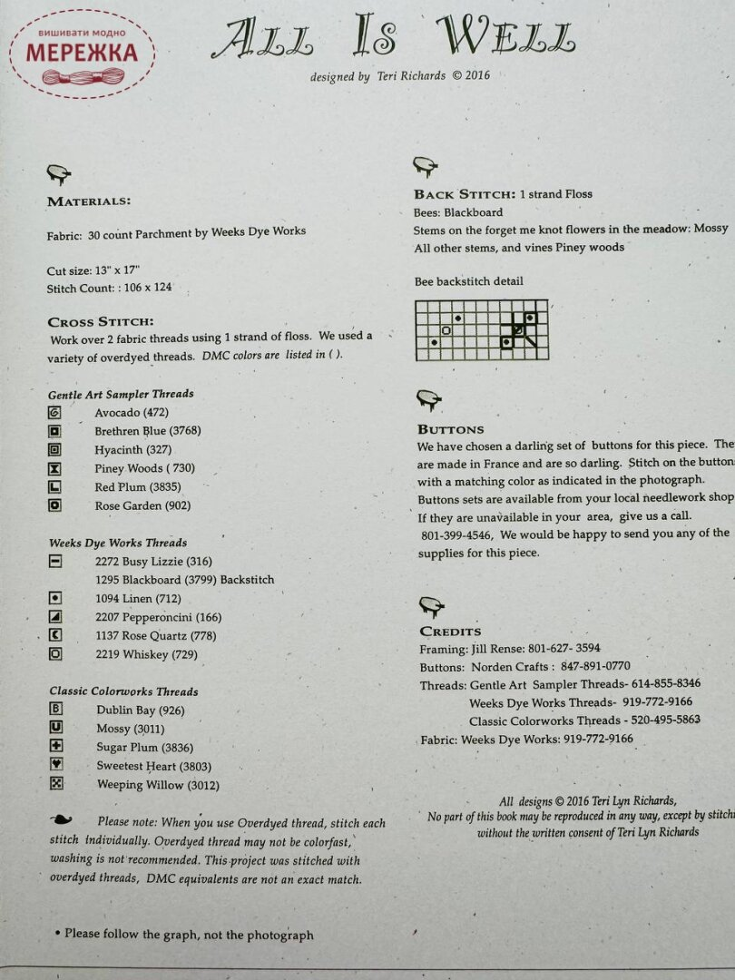 Всі необхідні матеріали (тканину та муліне) ви знайдете у нашому магазині. Якщо нитки від деяких виробників відсутні в нашому магазині, ми разом зможемо підібрати коректну заміну на муліне DMC.