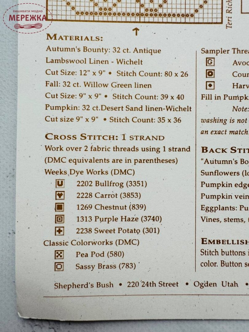 Схема для вишивання хрестиком Autumn Trifles від Shepherd's Bush.