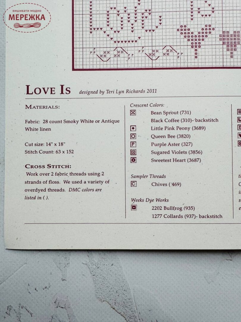 Схема для вишивання хрестиком Love Is від Shepherd's Bush.