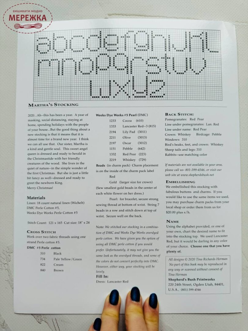 Схема для вишивання хрестиком Martha's Stocking від Shepherd's Bush.