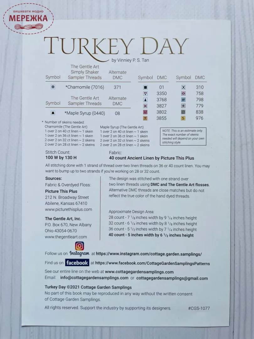 Схема для вишивання Cottage Garden Samplings Turkey Day. A Time for All Seasons Series #11 CGS-1077