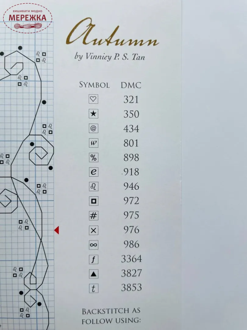 Рекомендовані нитки: DMC 321, 350, 434, 801, 898, 918, 946, 972, 975, 976, 986, 3364, 3827, 3853.