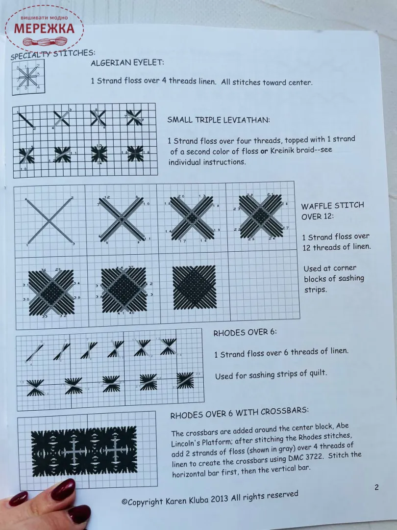 Схема для вишивання від Rosewood Manor "Abe and Mary Lincoln's Quilt Sampler".