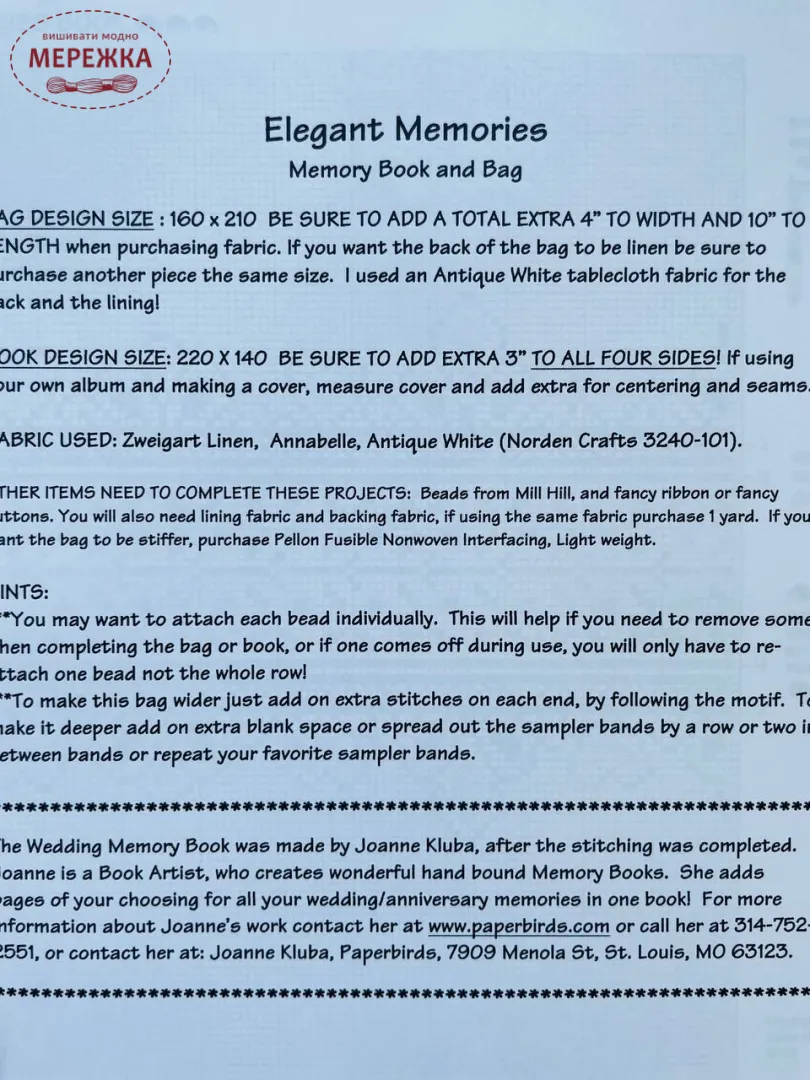 Схема для вишивання та пошиття сумки від Rosewood Manor "Elegant Memories".
