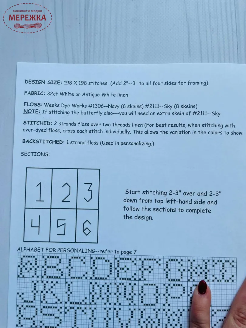 Рекомендовані нитки: WDW 1306 Navy (6), 2111 Sky (8).