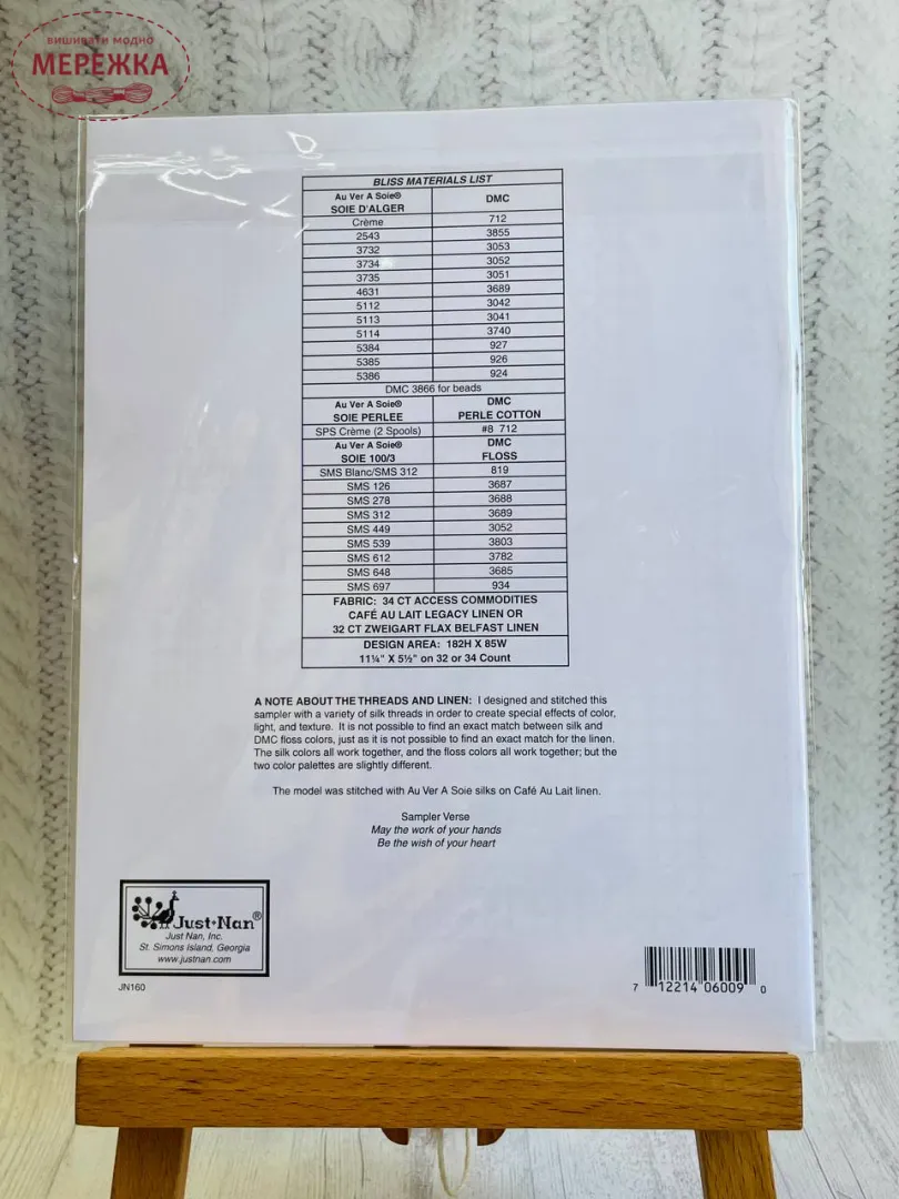 Цей американський виробник був новатором у тому, щоб прикрашати свої дизайни скарбами-шармиками, надаючи їх разом зі схемою. Також особливість Just Nan є те, що окрім хрестика в своїх схемах вони використовують спеціальні стібки. Схеми напрочуд зрозумілі та легкі, отже в вас не виникне складнощів із вишиванням за зборкою готового виробу.