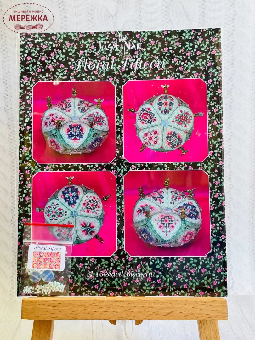 Схема для вишивання та виготовлення біскорню із квітковими мотивами "Floral Fifteen".