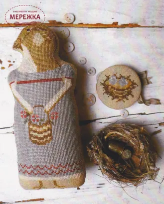 Рекомендовані нитки: The Gentle Art Sampler threads Old Hickory 7048, Straw Bonnet 7002, Roasted Marshmallow 7057, Rose Garden 7068, Weathered Barn 7046, Picnic Basket 7060, Black Licorice 7098, Barn Grey 7001, Moss 0194.