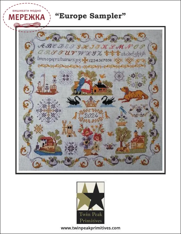 Схема “Europe Sampler” від Twin Peak Primitives, одного із найновіших брендів «Cross Stitch Design», заснованого у середині 2017 року.