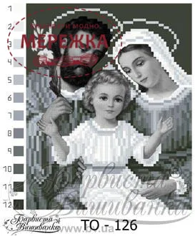 Схема для вишивання бісером на релігійну тематику Святе Сімейство (чорно-біла) ТО126 від виробника Барвиста Вишиванка.