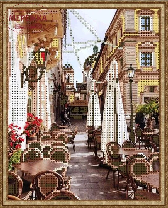 Схема для вишивки бісером формату А4, Вуличне кафе у Львові.