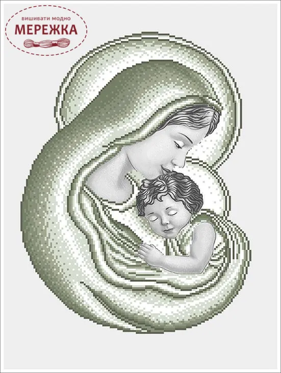 Схема для вишивання бісером БС Солес на регілійну тематику - Марія з Ісусом (сепія).