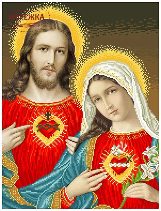 Схема для вишивання бісером Солес Відкрите серце Ісуса та Марії, ВСІМ