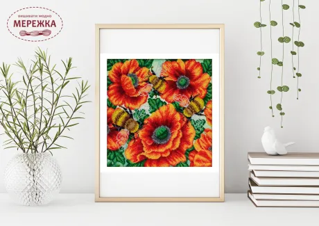 Схема для вишивки бісером - Джмелі у квітковому саду.