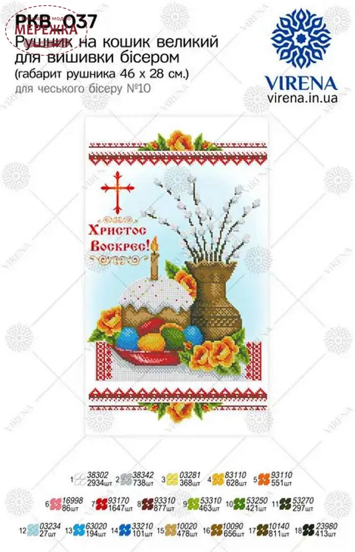 Схема для вишивання бісером великоднього рушника РКВ-037 від виробника "Virena".