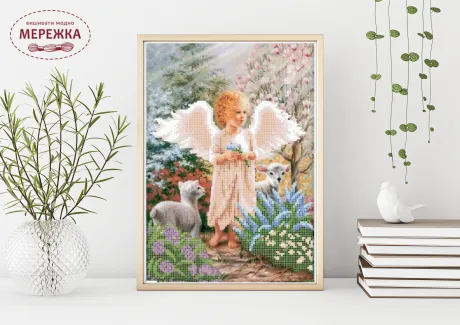 Схема для вишивання бісером "Ангелик з овечками" - ніжний сюжет з ангеликом у саду.