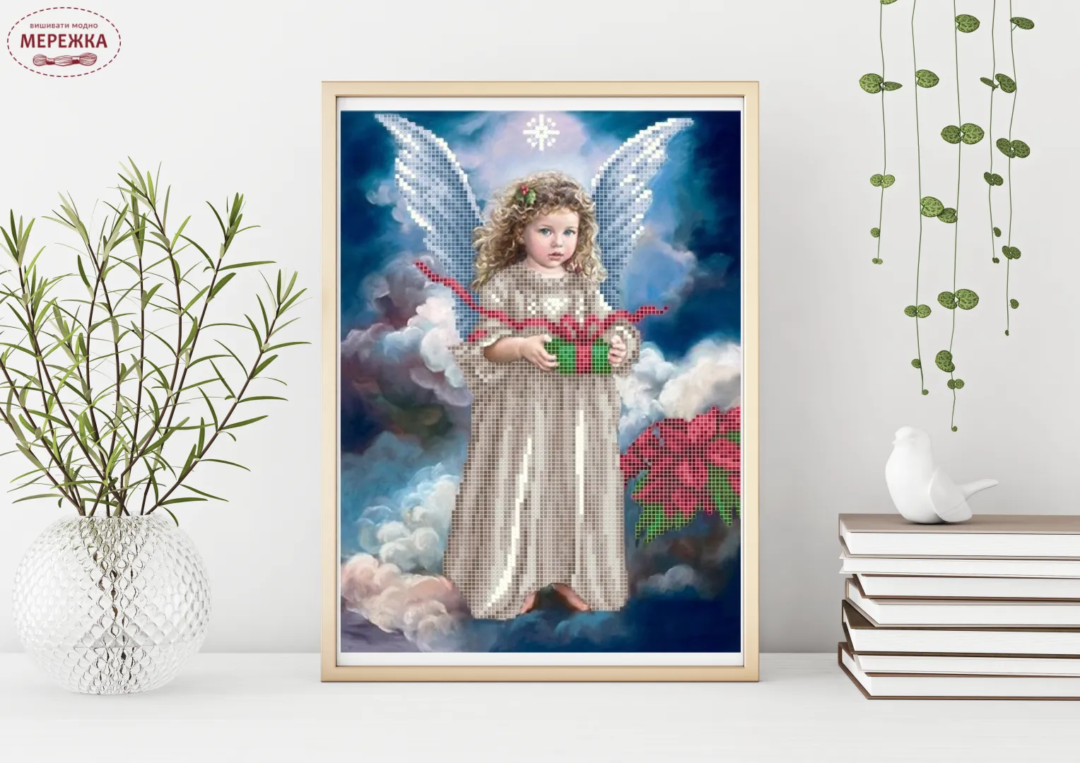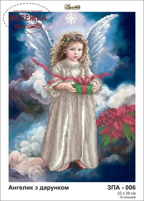 Схема для вишивання бісером "Ангелик з подаруноком" - ніжний сюжет з різдвяним ангеликом.