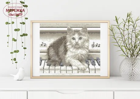 Схема для вишивання бісером Золота Підкова Котик на піаніно ЗПТ-004