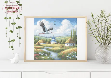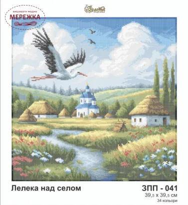 Схема для вишивання бісером Золота Підкова Лелека над селом ЗПП-041
