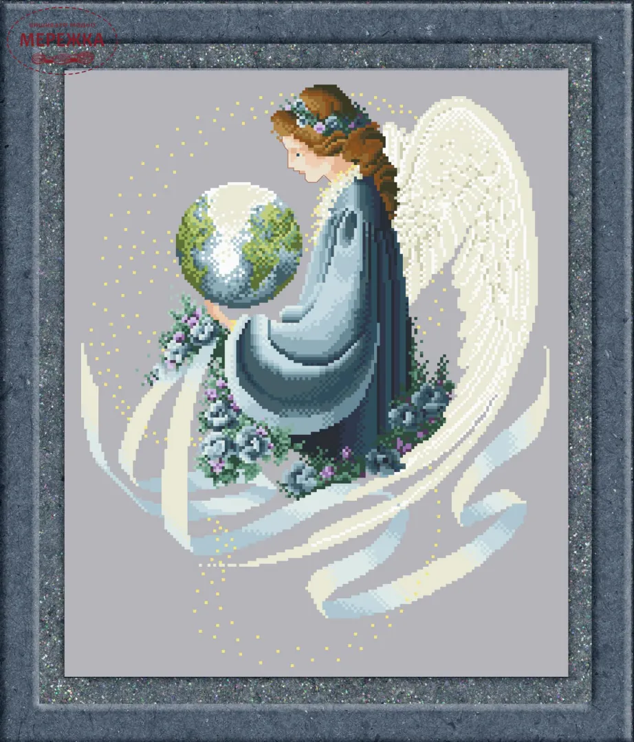 Схема для вишивки бісером формату А3, красивий Різдвяний ангел.