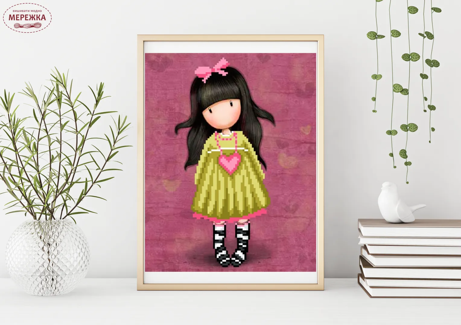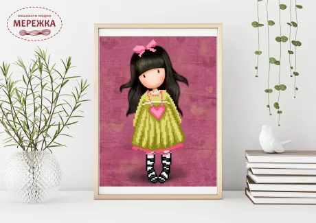Схема для вишивки бісером формату А4, симпатична дівчинка Кралечка.