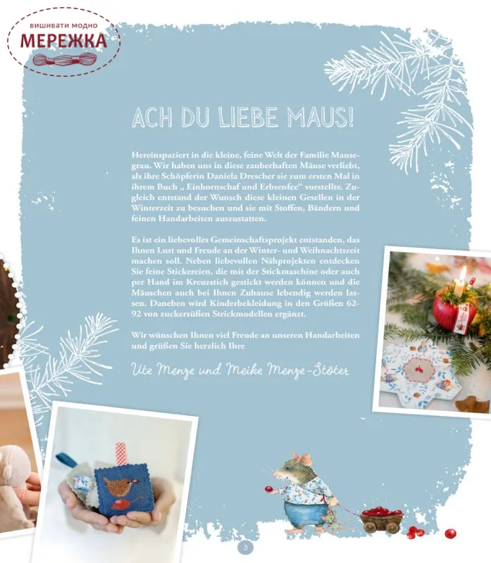 У цій книзі милі мишенята вишиваються як голкою, так і за допомогою вишивальної машини.