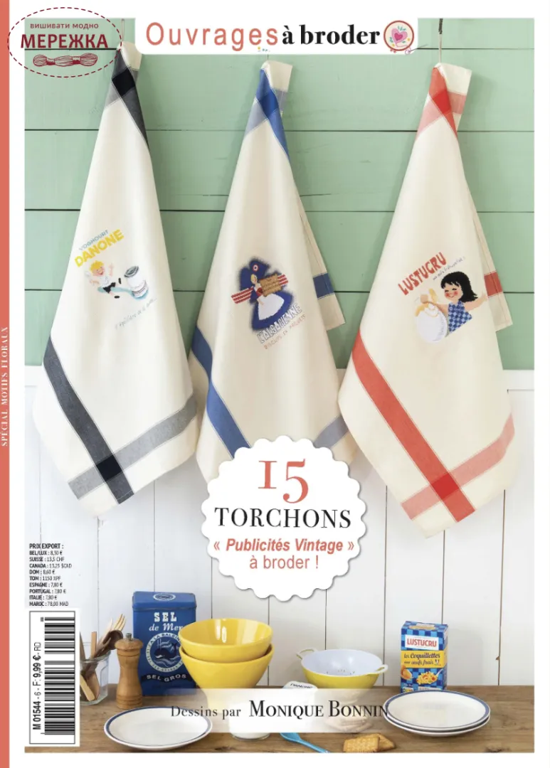 Ласкаво просимо до світу, де ностальгія зустрічається з творчістю! У журналі представлені вишиті кухонні рушники, натхненні старими рекламними оголошеннями, які залишили свій слід у наших спогадах. Ці вінтажні постери, справжні скарби епохи, коли елегантність поєднувалася з майстерністю, тепер знаходять нове життя завдяки вашим голкам та таланту. Чи то пустотлива «Смішлива корова», елегантність малюка Кадума чи грайлива чарівність маленької ельзаської дівчинки, - кожен мотив розповідає історію. Вишиваючи ці символи, ви повертаєте спільні спогади до життя, водночас прикрашаючи своє повсякденне життя автентичністю та стилем. Вишивка – це набагато більше, ніж хобі: це мистецтво, яке вимагає терпіння, пристрасті та дози любові. За допомогою цих дизайнів ми сподіваємося відродити ваше натхнення та прикрасити ваш дім, водночас святкуючи історію французької реклами. Тож приготуйте нитки та голки! Привнесіть нотку ретро у свою кухню та лишіть власну данину цій позачасовій класиці. Щасливого вишивання та щасливої подорожі в часі!