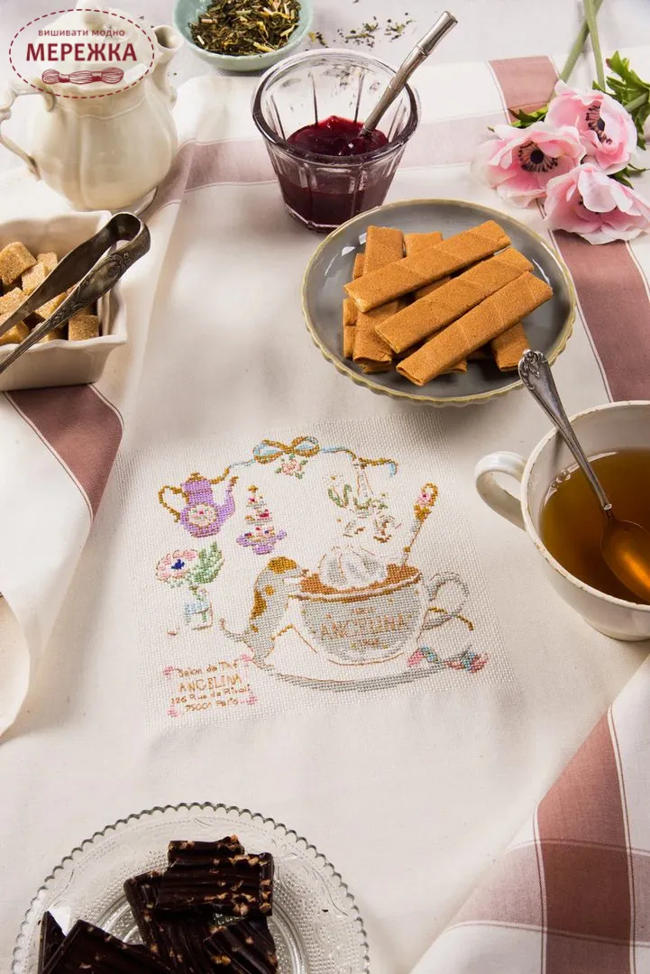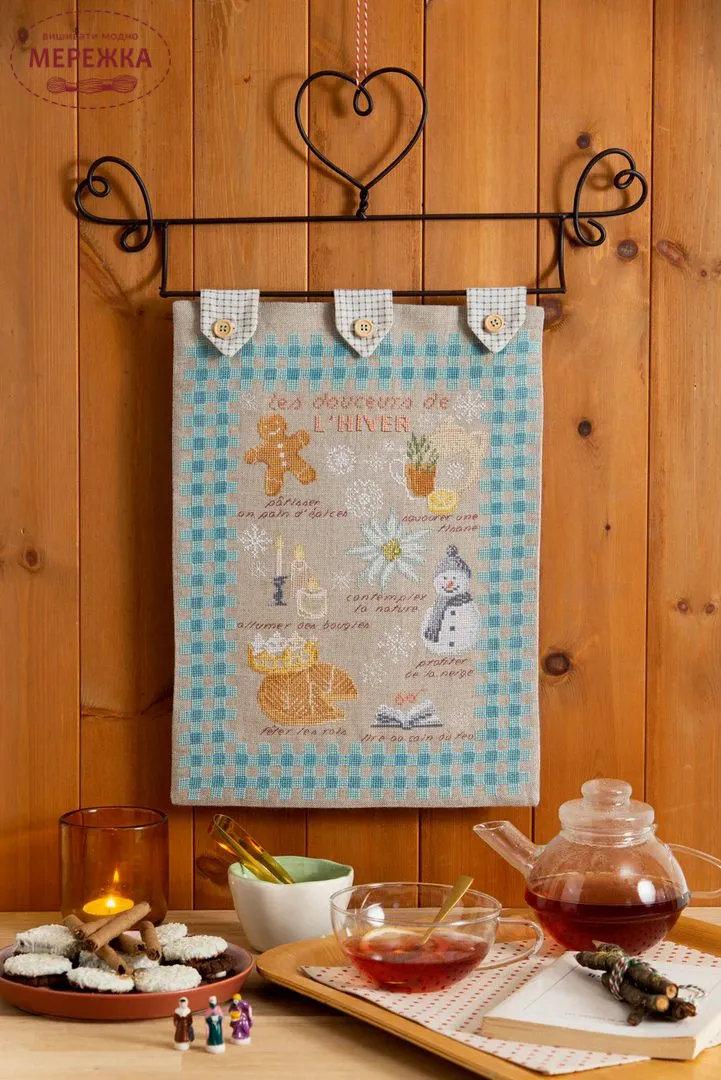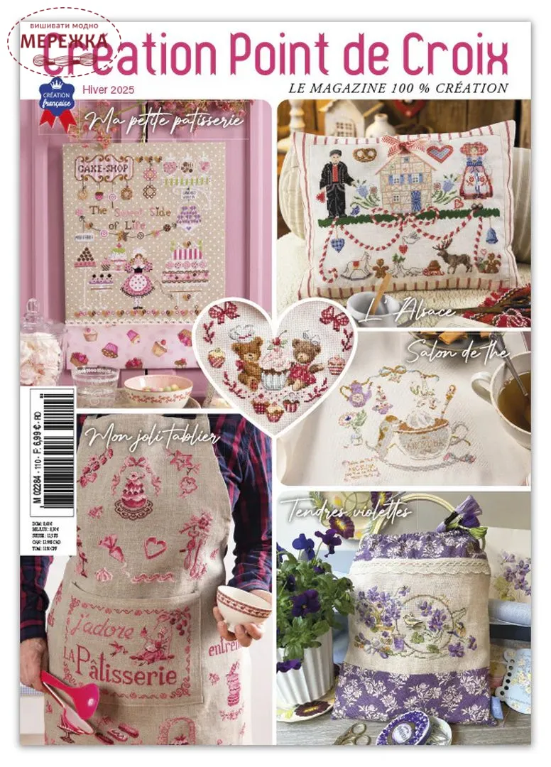 Цей зимовий випуск присвячений насолоді та традиціям. Починаємо з прекрасної вішалки з кількома фасадами будинків. Приготуйте голки, щоб вишити елегантний фартух, прикрашений випічкою, або, можливо, чарівну картину, на якій зображено двох маленьких ведмедиків, які насолоджуються смачними ласощами. Зимові делікатеси також з'являються на ніжній картині, а два виняткові кухонні рушники віддають шану мистецтву вишуканої кухні: один присвячений севрській порцеляні, а інший – легендарному паризькому кафе Angelina. І не забуваймо про витвори, що вибухають кольором та солодкістю: макаруни, кекси та тістечка на будь-який смак. Потім вирушайте до Ельзасу з чарівною подушкою, що відзначає його традиції: костюми, кренделі та теплу атмосферу зимових черг. Насамкінець, розділіть приємні моменти за чашкою чаю з чудовим алфавітним семплером, делікатно вишитим та поданим в елегантному чайнику.