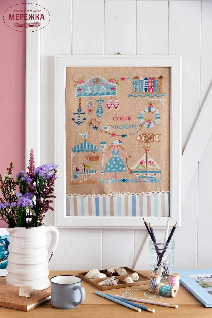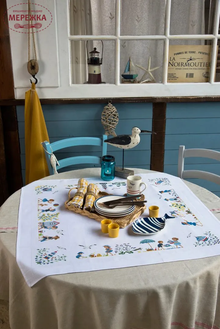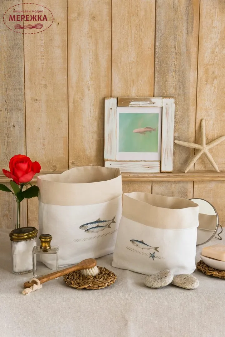 Життєрадісні пляжні хатинки, скатертина з натяком на море, ніжні мішечки, вишиті сардинами, не кажучи вже про вишивку у вигляді святкової листівки. Кожен стібок викликає солоне повітря та спогади про літо.