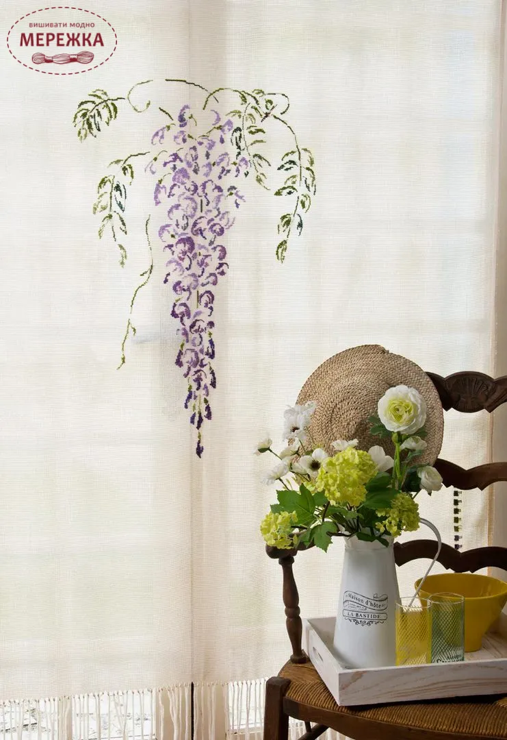 А щоб поширити це натхнення у ваш дім, у цьому випуску також пропонується прикрасити ваші вази вишитими стрічками, повісити квітковий букет з ніжних метеликів або дозволити грону гліцинії танцювати в ніжних обіймах легкої завіси.