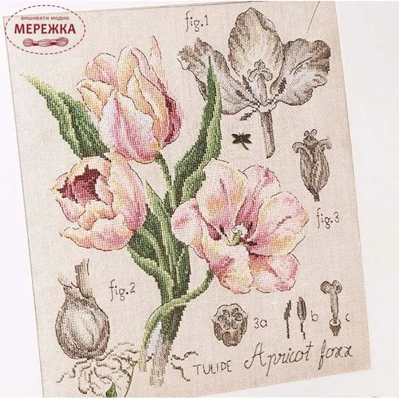 Les Brodeuses Parisiennes Схема Etude a la Tulipe+тканина, пришивний шарм