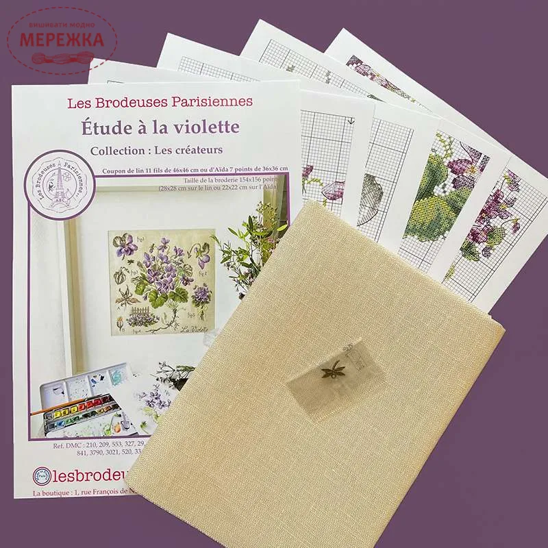 Les Brodeuses Parisiennes Схема Etude a la violette+тканина, пришивний шарм