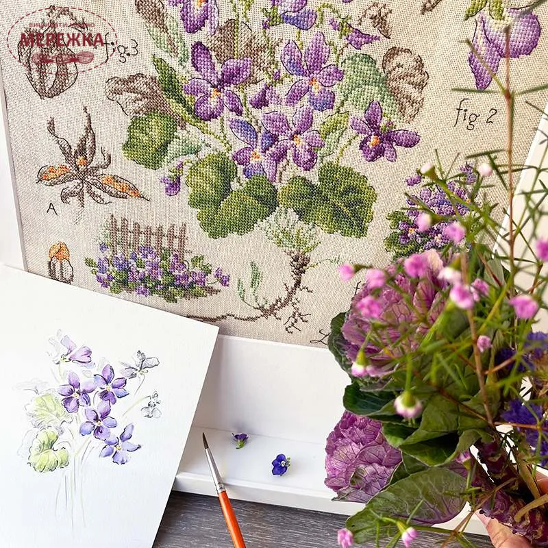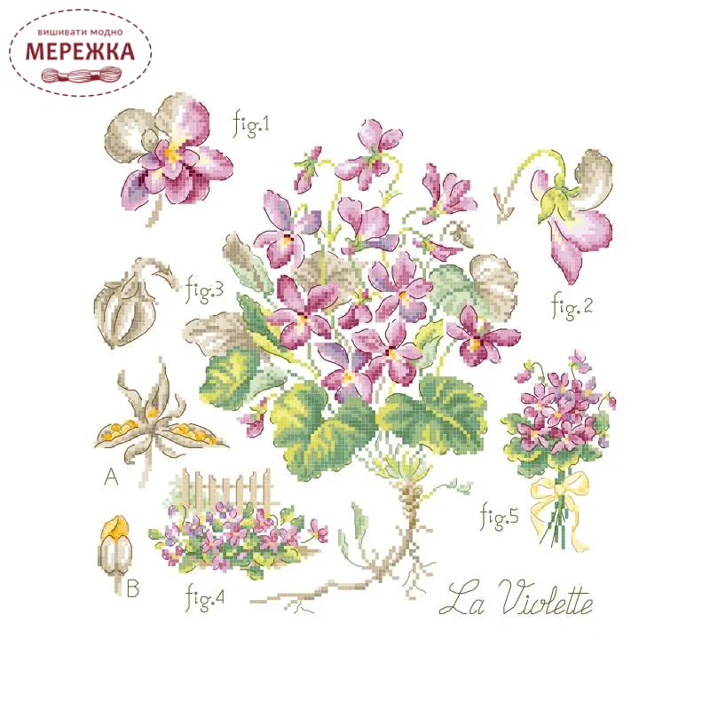 Схема "Etude a la violette" +тканина, пришивний шарм від Veronique Enginger для Les Brodeuses Parisiennes.