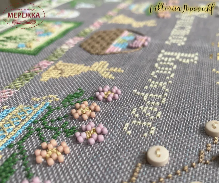 Схеми Вікторії містять різноманітні техніки: вишивку хрестиком, різноманітні декоративні шви.