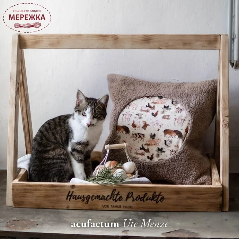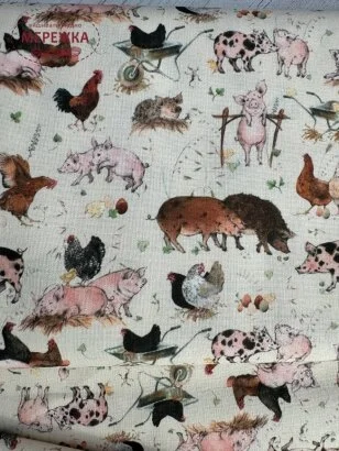 Метушня у фермерських стайнях. Кури та поросята грають і мчаться. З чудової тканини можна зробити подушки, ковдри, доріжки та пледи за бажанням - вашій фантазії немає меж.
