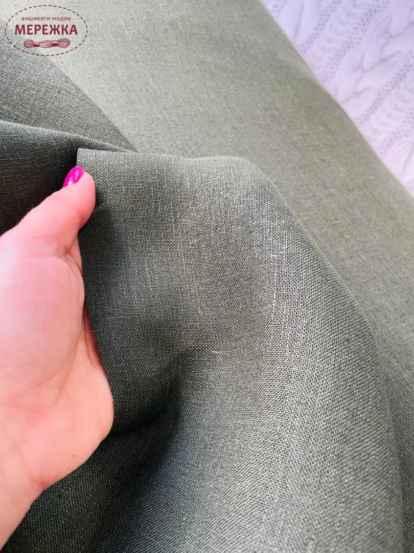 Домоткане полотно для вишиванок Амазон, 100% льон, хакі