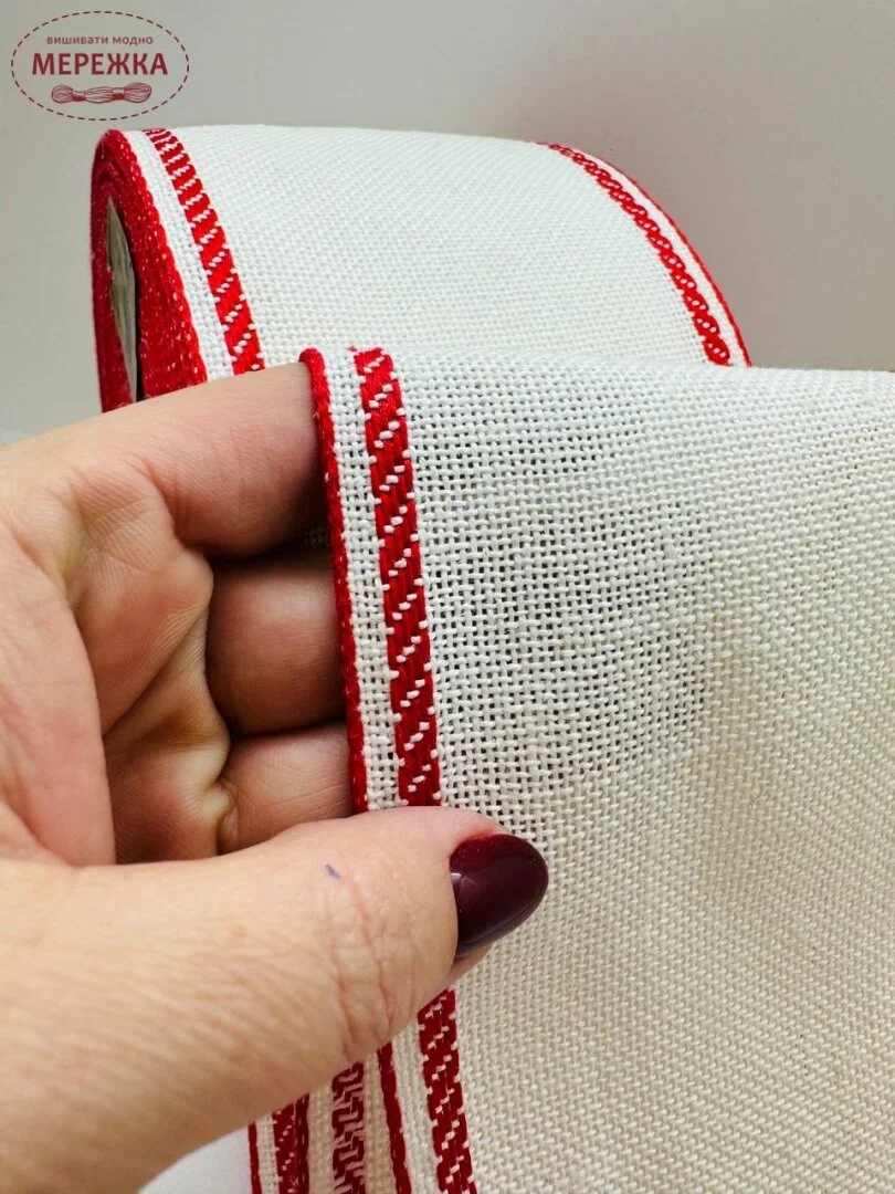 Стрічка виготовлена з рівномірного лляного полотна по якій можна вишивати будь-які дизайни.
