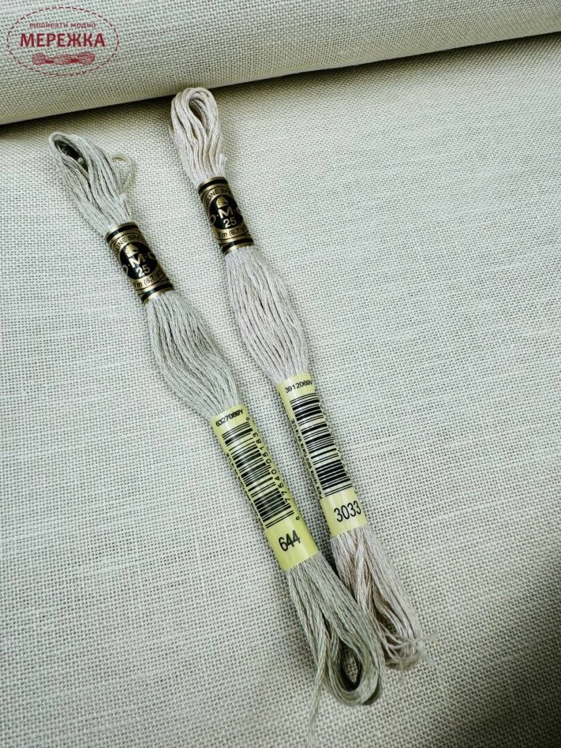 Колір тканини еквівалентний муліне DMC - 644+3033.