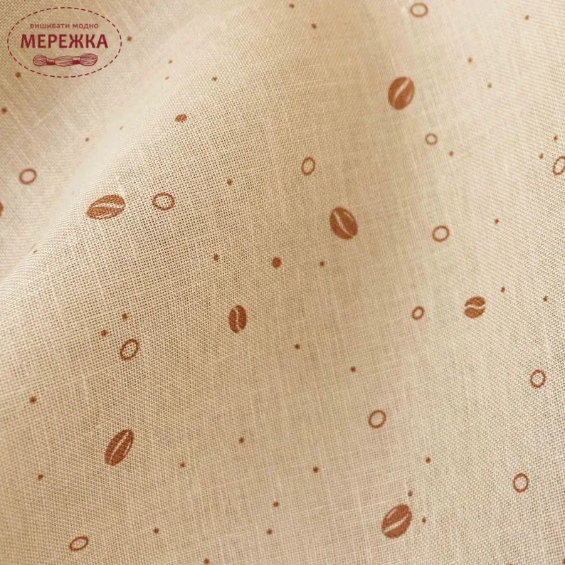 Колір тканини еквівалентний муліне DMC - фон 3782, принт 3772.